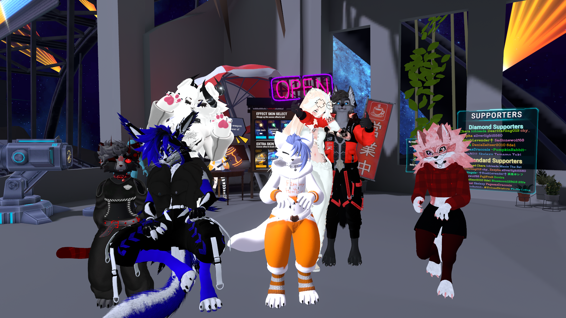 Site, groupe VRChat, musique officielle et Discord.